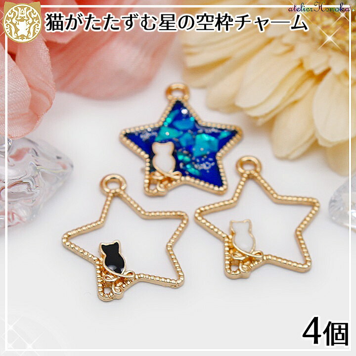 ネコと星がモチーフの空枠チャームです♪