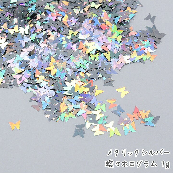 メタリック加工が施されたシルバーの蝶々型ホログラムです。